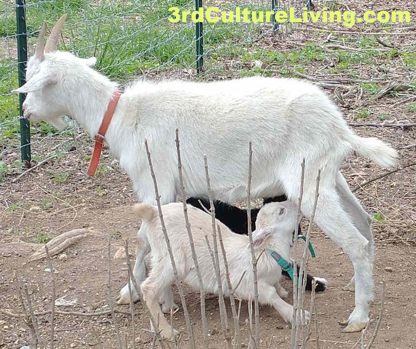Our twins nursing… Baby goats, like baby people, know what to do for real food.