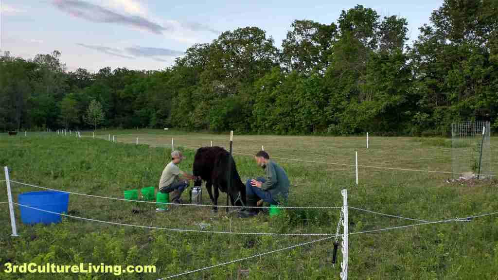 In the last update I mentioned that we now have two cows (correction: head of cattle). We do not have 2 COWS. We have one cow (a female after having a baby), and one heifer (a female which has not yet had a baby). We also have three goats which have given birth within the past few months. The four ruminants with babies have brought what is likely the biggest change to our homestead routine… milking.
