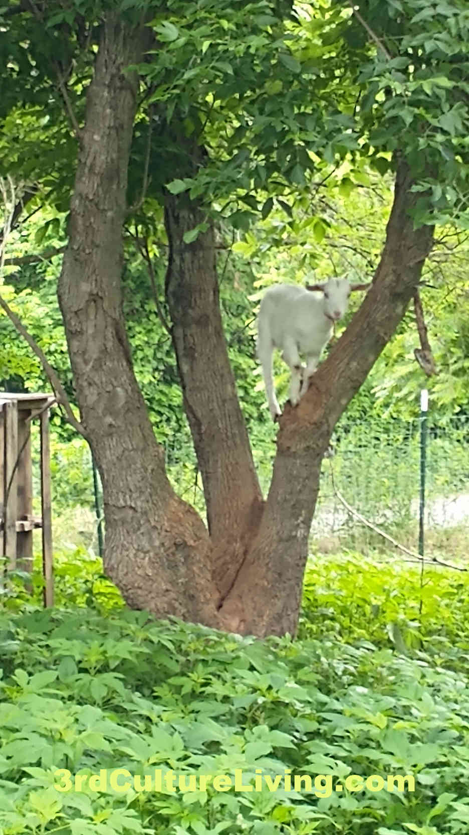 In lieu of pictures of people, here’s a fun picture of one of our goats climbing a tree.